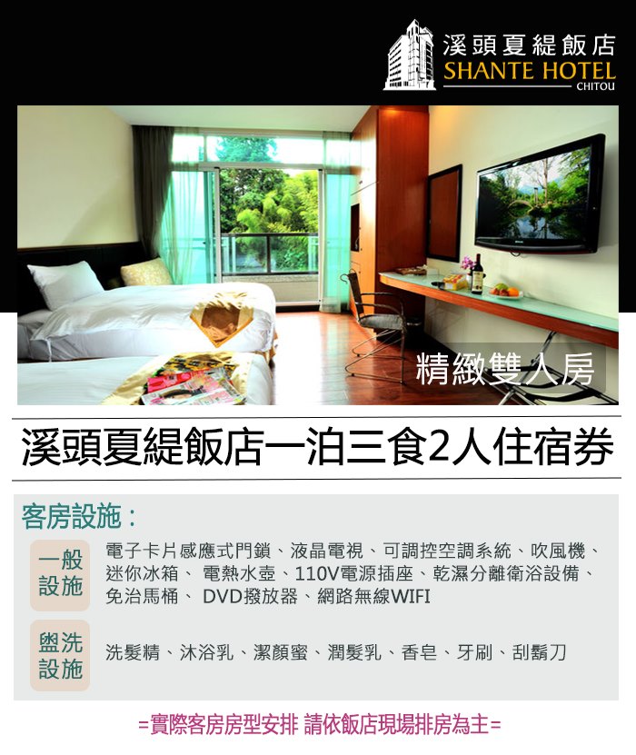 【溪頭】夏緹飯店一泊三食2人住宿券