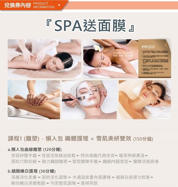 VIVISPA懶人纖體美妍/浪漫舒壓小顏150分(2擇1)贈MASKING面膜7片