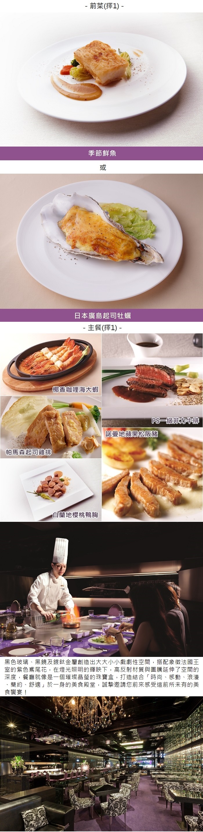 王品集團夏慕尼法式鐵板燒餐券(4張) -平假日適用/已含服務費(新券)