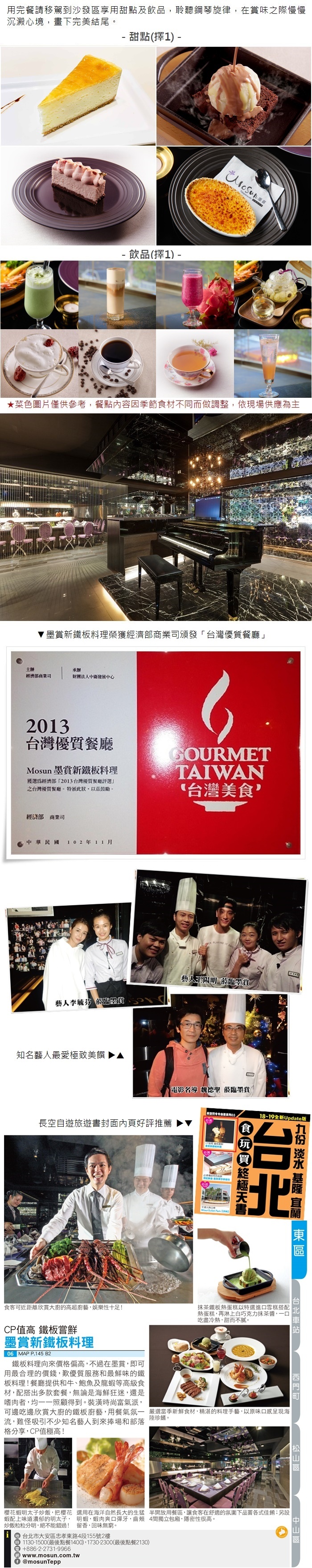 【台北】墨賞新鐵板料理季節鮮魚或起司牡蠣海陸套餐