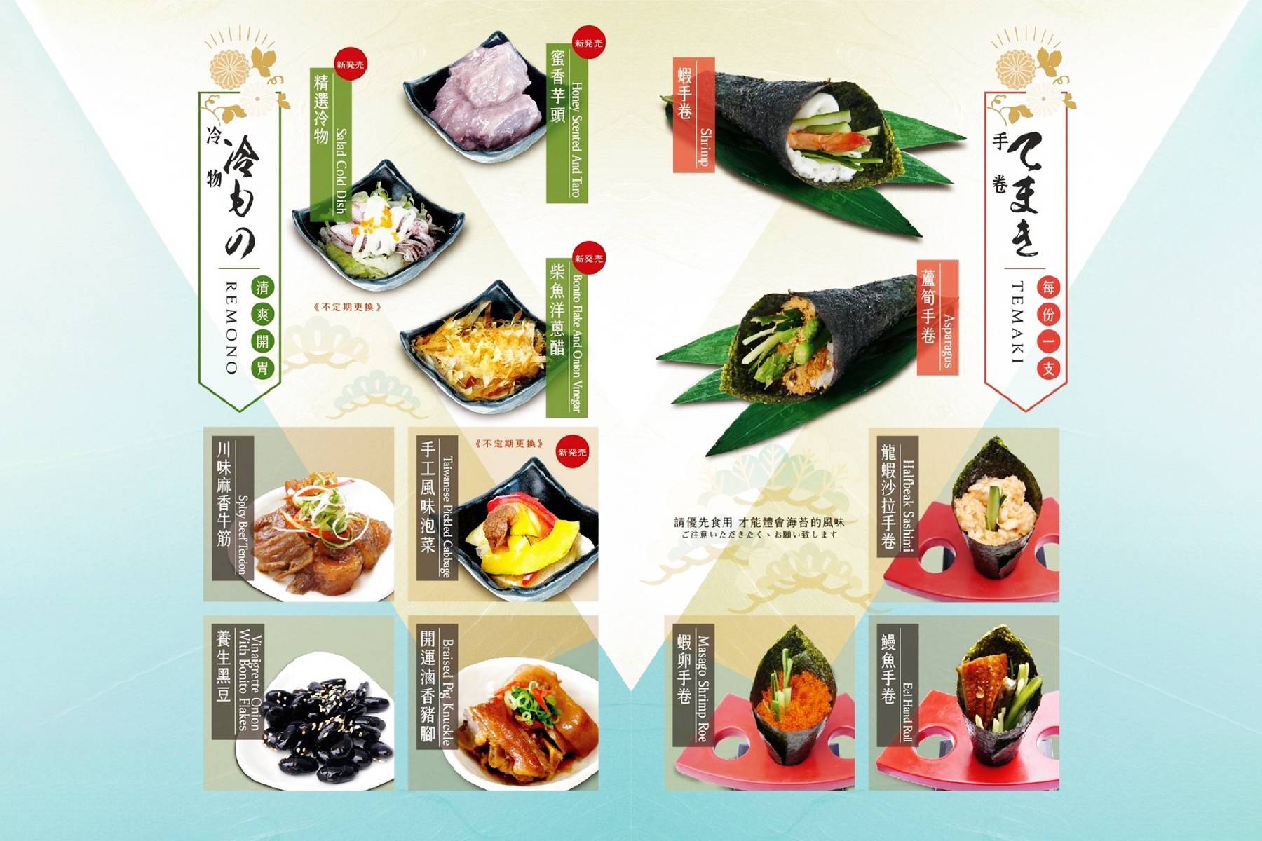 我們誠摯的邀請您來享受我們為您所準備的日式料理大餐。