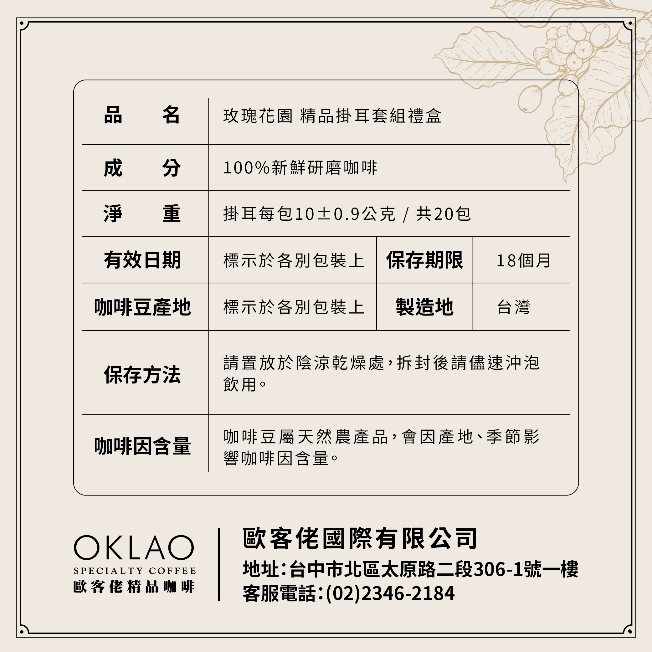 ➌精品掛耳保存期限標示為18個月,因每款精品掛耳銷售量不一定,您收到的精品掛耳部分可能會在14個月以內賞味期,若無法接受請勿下單!