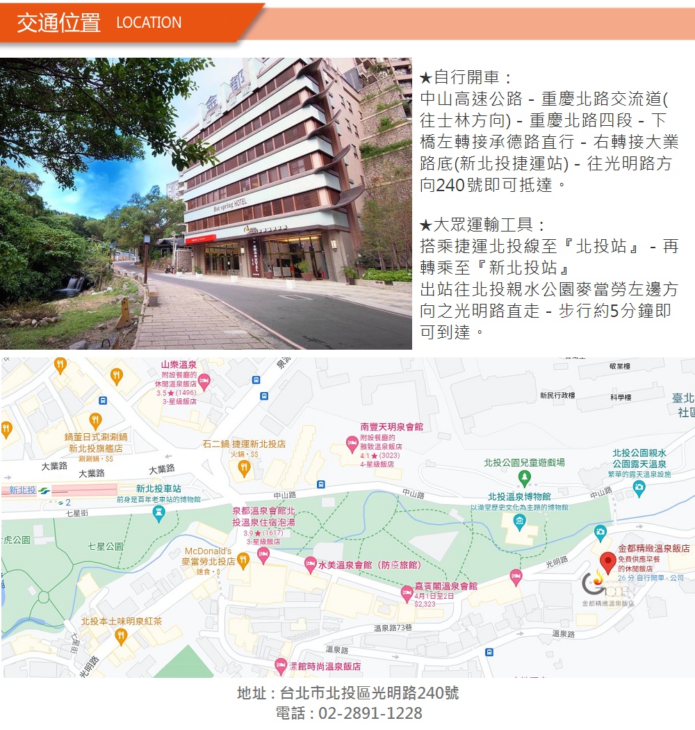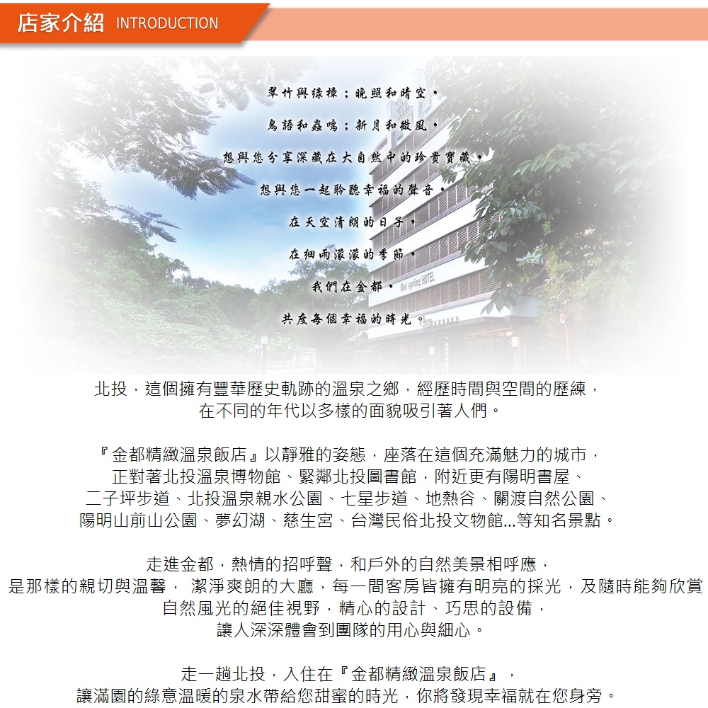 【北投】金都精緻溫泉飯店-親水景觀套房平日1.5H泡湯券Ⓗ