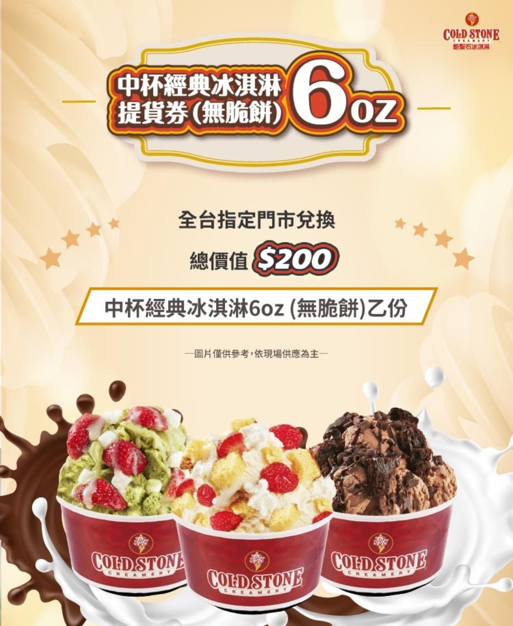 【COLD STONE】 經典冰淇淋(中)+口味脆餅好禮即享券