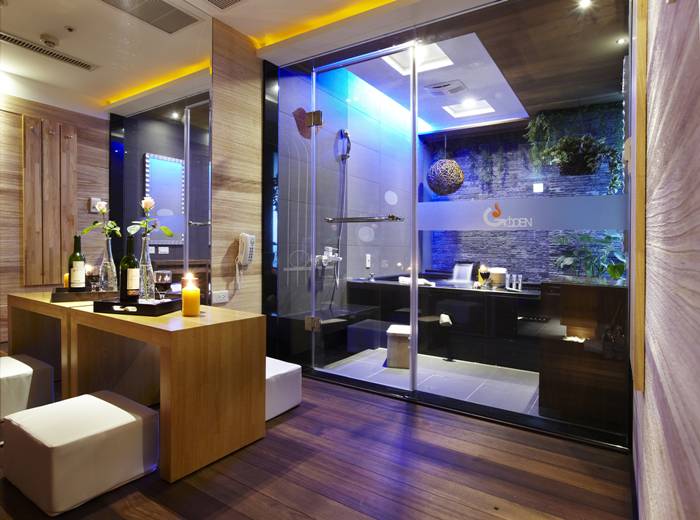 簡潔明亮的寬敞空間,超大的原石浴池,點綴著星月般的燈光,洋溢著低調奢華的時尚品味。