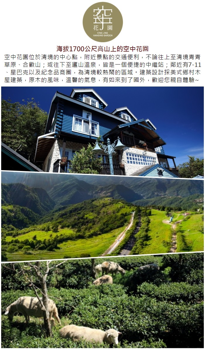 【清境】空中花園-典雅雙人住宿券可加價升等四人
