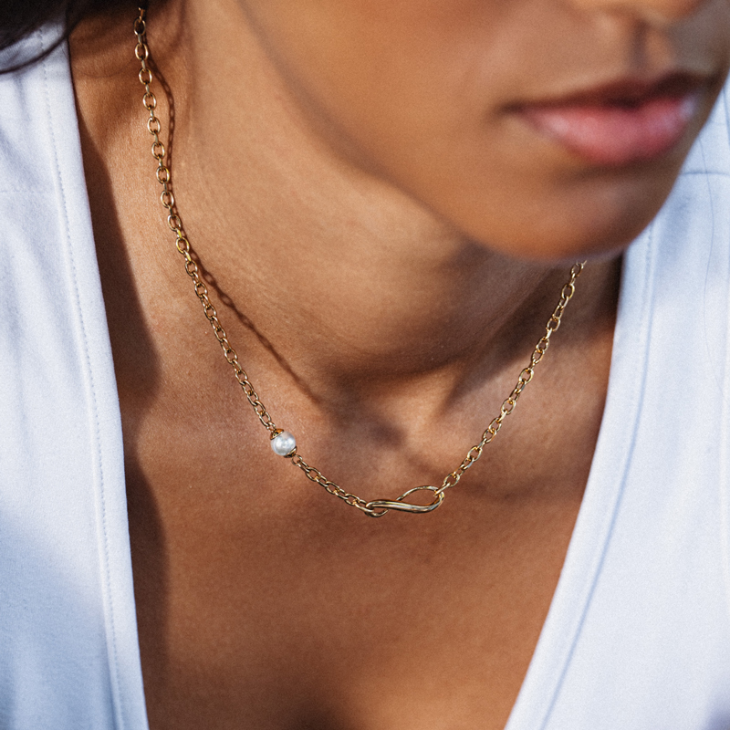 Unlimited 單珠項鍊,透過∞與珍珠的搭配點綴,時刻提醒自己,生活可以透過簡單的搭配創造,更添優雅圓滑。
