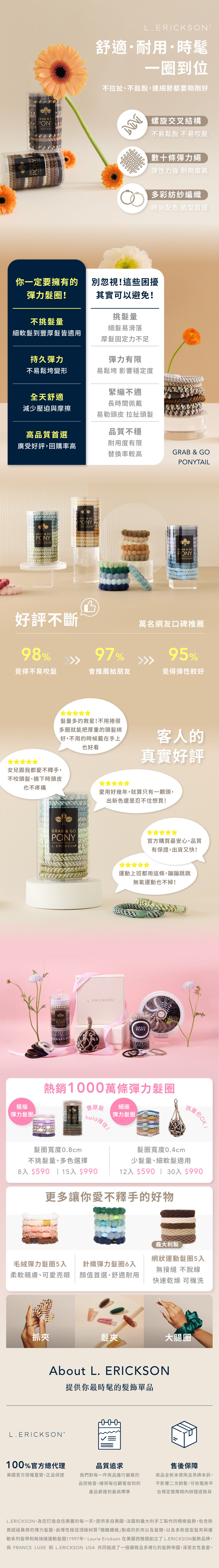 L. ERICKSON 彈力髮圈30入-細版〈經典色〉