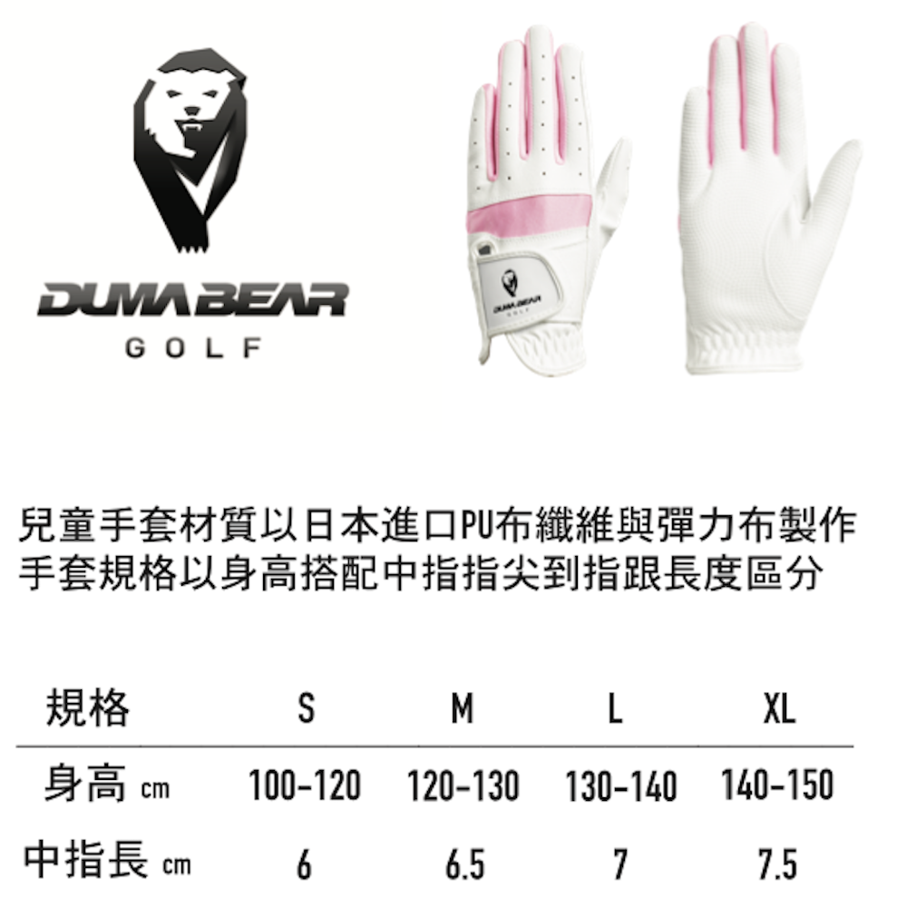 Duma Bear 兒童高爾夫球手套-粉色