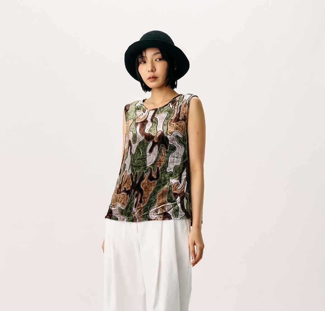 復古絲絨印花無袖背心