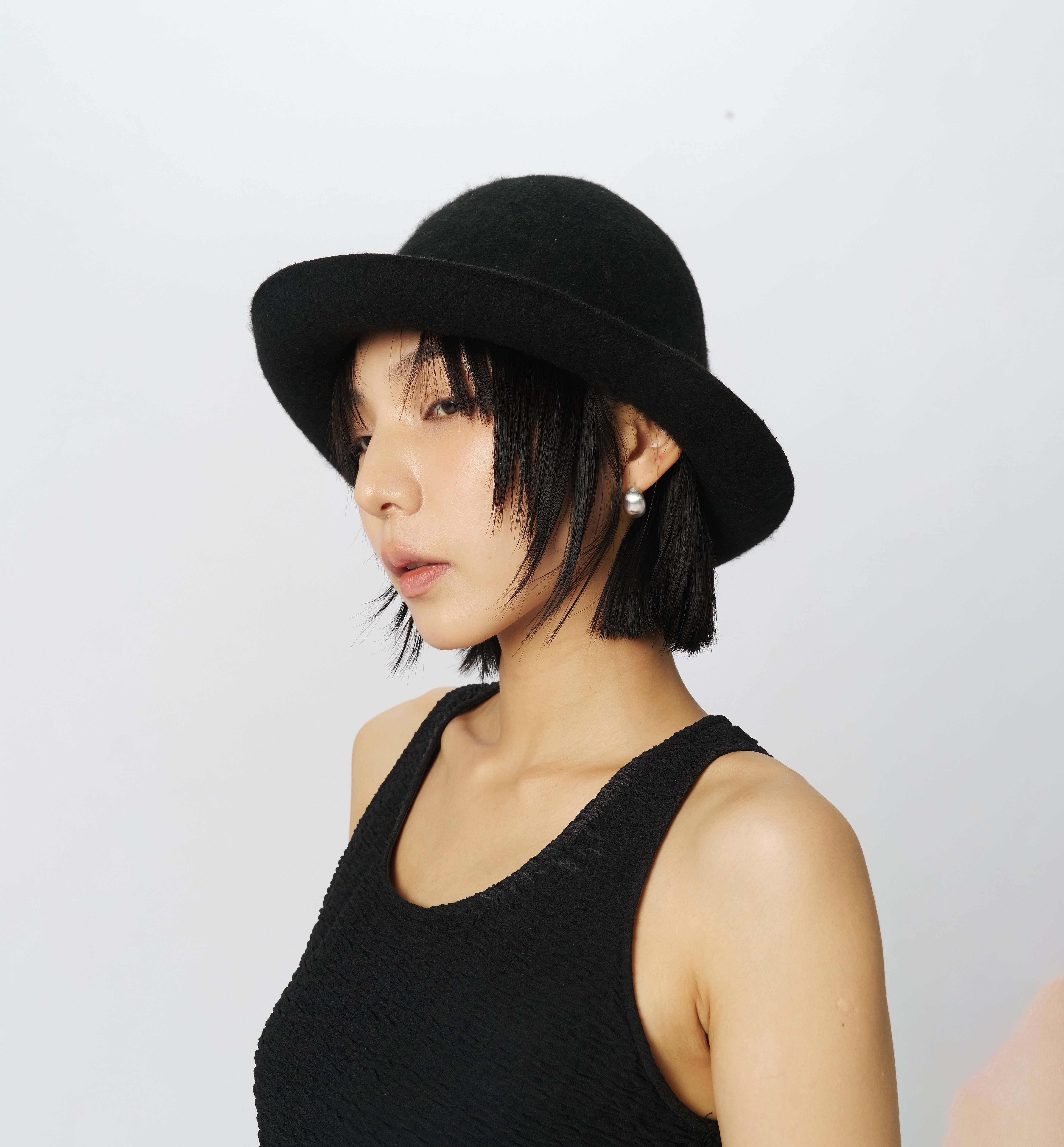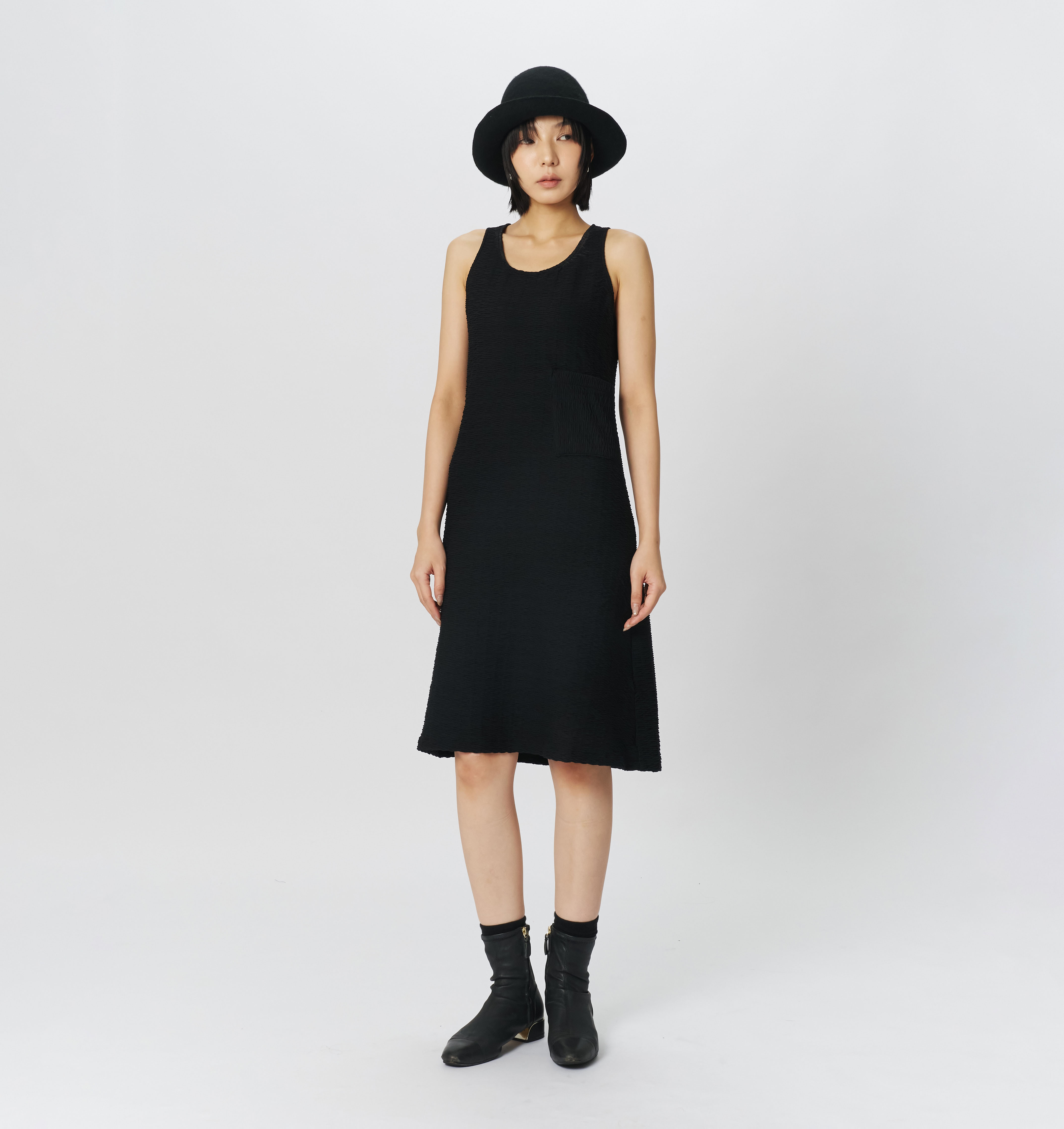 birphin | 小浪花吊帶裙 | 墨 色 100% 苧 麻 ramie