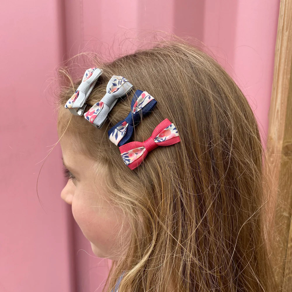 英國 Ribbies - 雙色緞帶蝶蝶結4入組(Mauvey Blue)