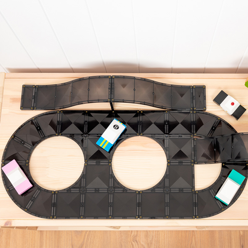-車道採用時尚的黑色色調,選擇排除白線和道路標記保持開放性玩具特性