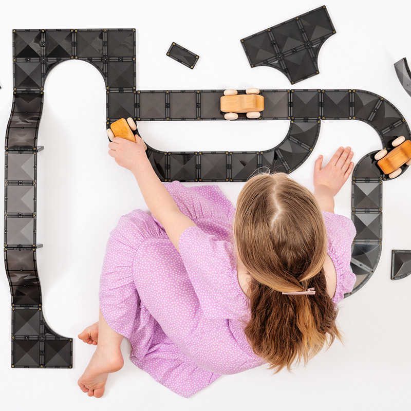 一起拓展想像力和創造力,為 STEAM 學習奠定基礎吧! 澳洲Connetix交通系列磁力積木具有獨特的道路靈感磁磚形狀,包括四分之一圓、轉彎車道、交叉路口以及長和短坡道,全部採用時尚的黑色色調。旨在推動無盡的建造冒險,孩子們可以自行建造滑板公園、賽車場、骨牌遊戲、雲霄飛車等各式各樣車道建築。
