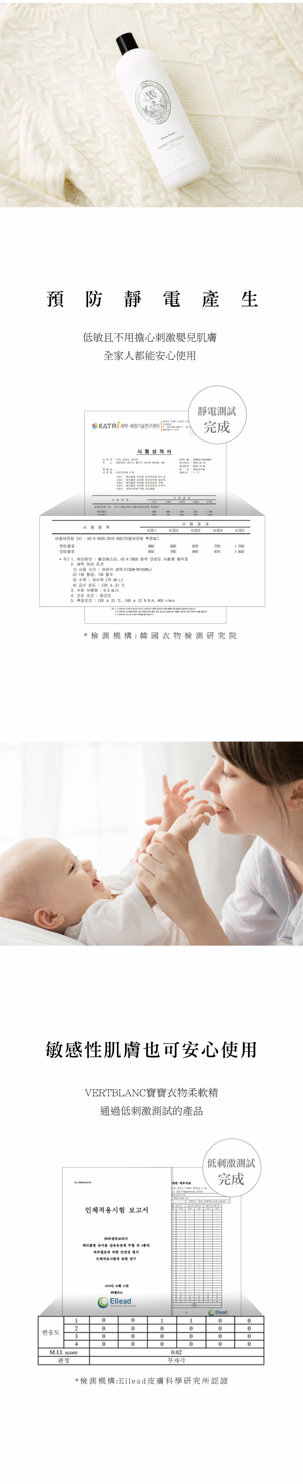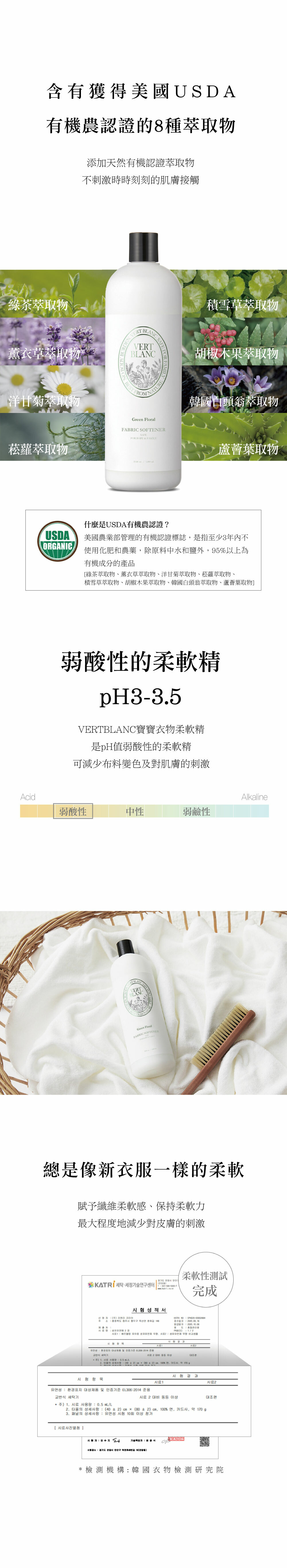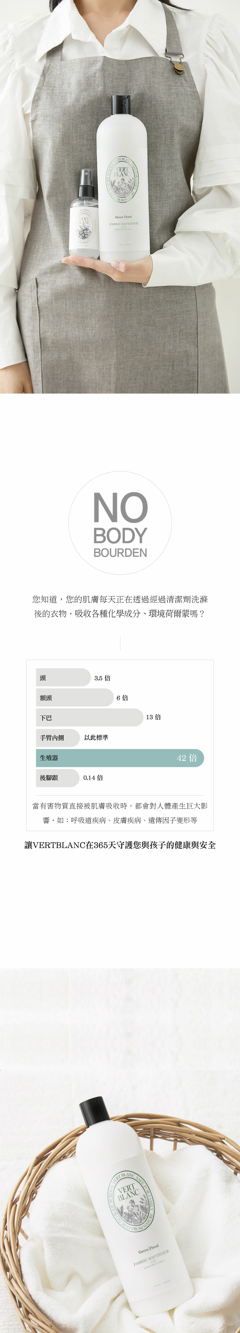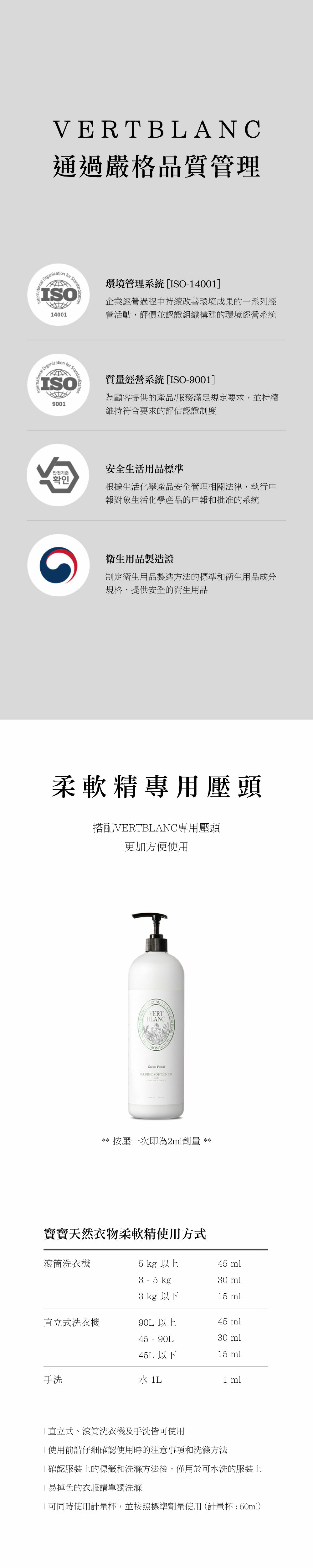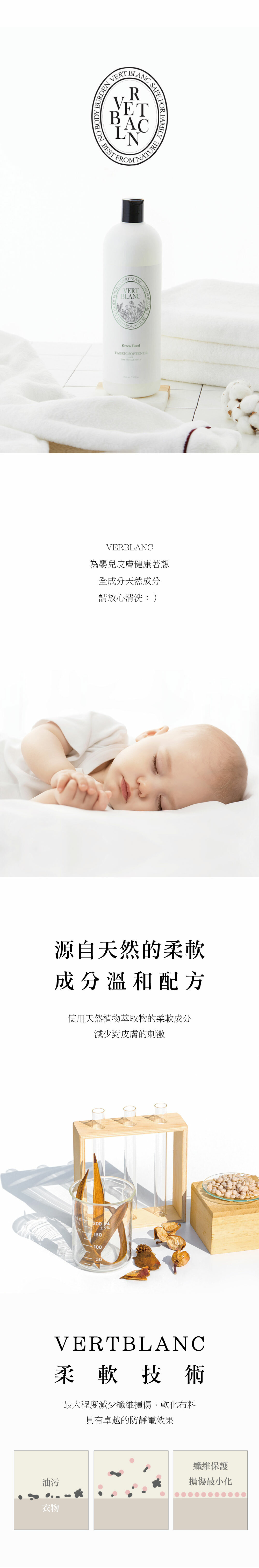 VERT BLANC 嬰兒衣物洗衣精 無香味 全家人的優質織物護理 3倍高濃縮 1L 1瓶