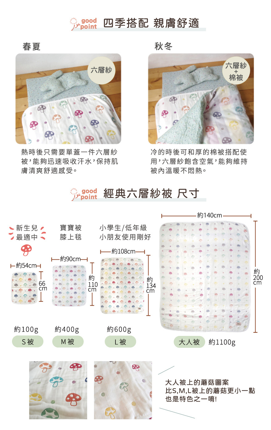 【安琪兒婦嬰百貨】日本 Hoppetta 六層紗蘑菇被(4尺寸可選)
