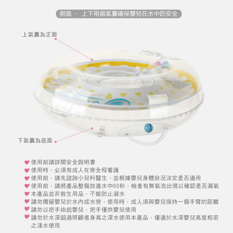 - 建議1歲以上嬰幼兒依個別生長情形選用其他款式游泳圈。