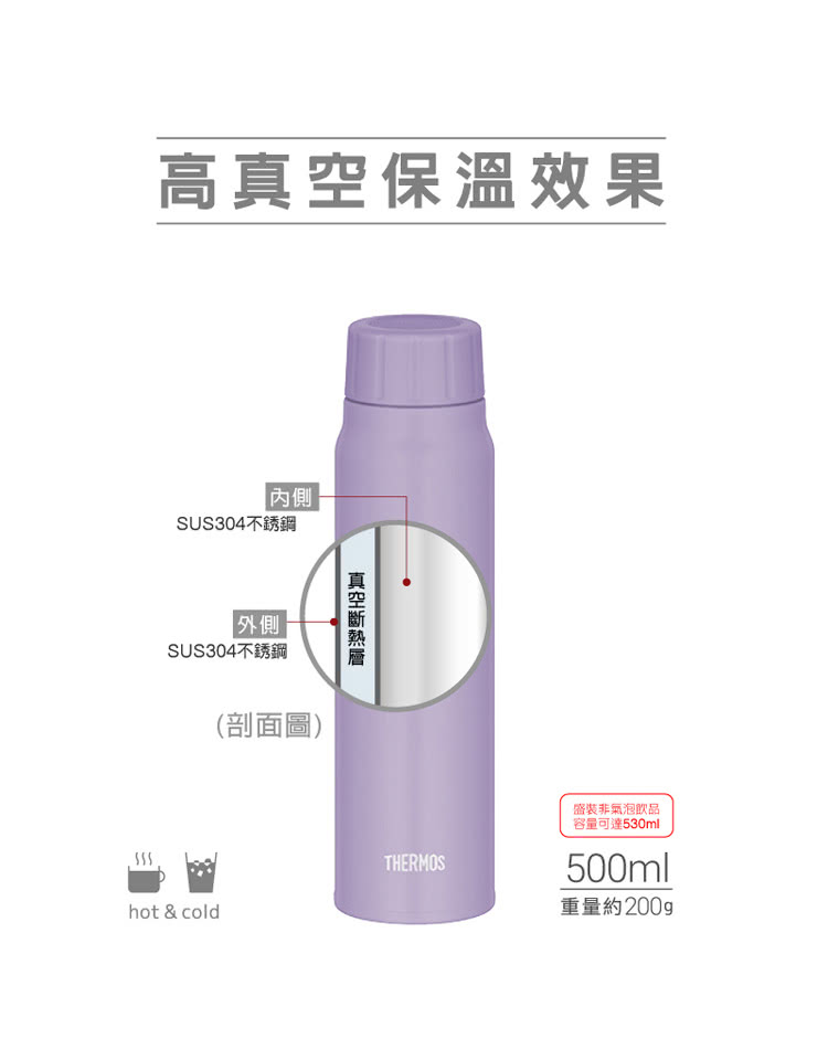 【THERMOS膳魔師】超輕量彈蓋真空保溫瓶500ml(JNL-506系列)