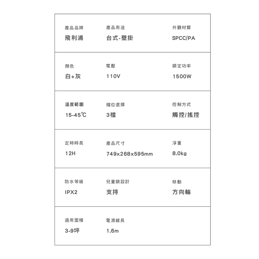 PHILIPS 飛利浦 對流取暖機 遙控 AHR3142CS 多重安全保護機制 可移動式設計