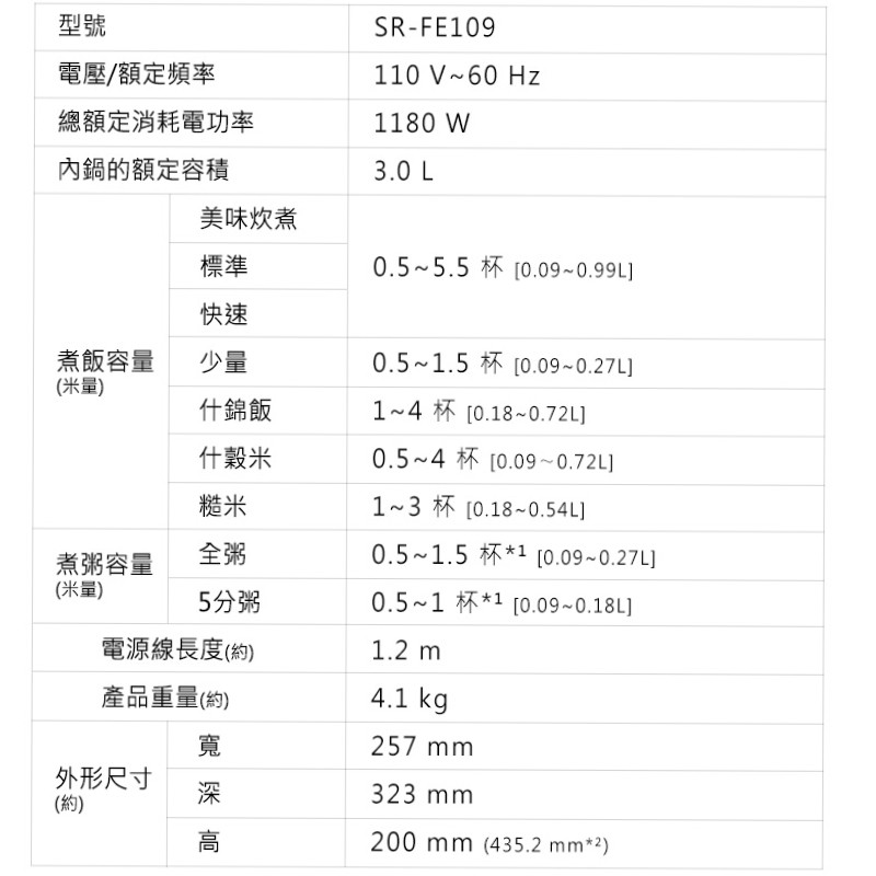 Panasonic國際牌6人份IH電子鍋SR-FE109