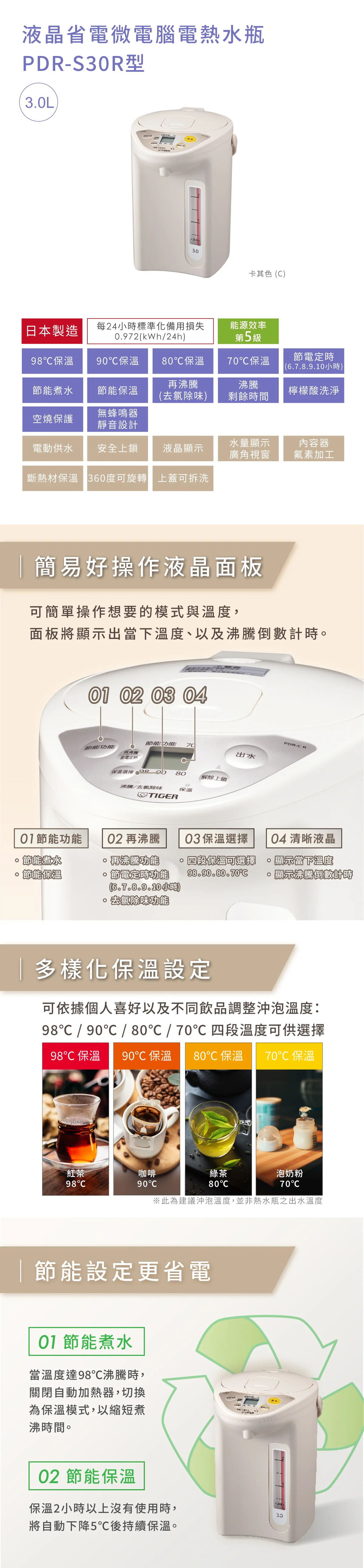 【TIGER 虎牌】日本製 微電腦電熱水瓶3L(PDR-S30R)