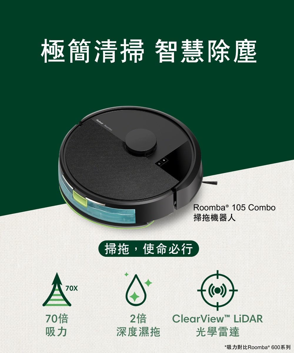 iRobot Roomba 105 Combo 掃拖機器人/黑/台