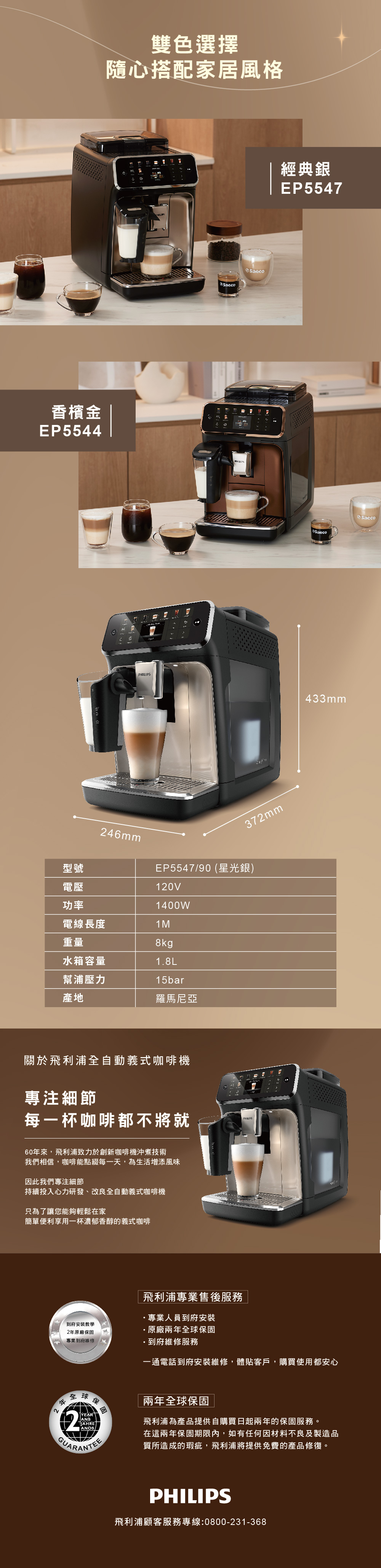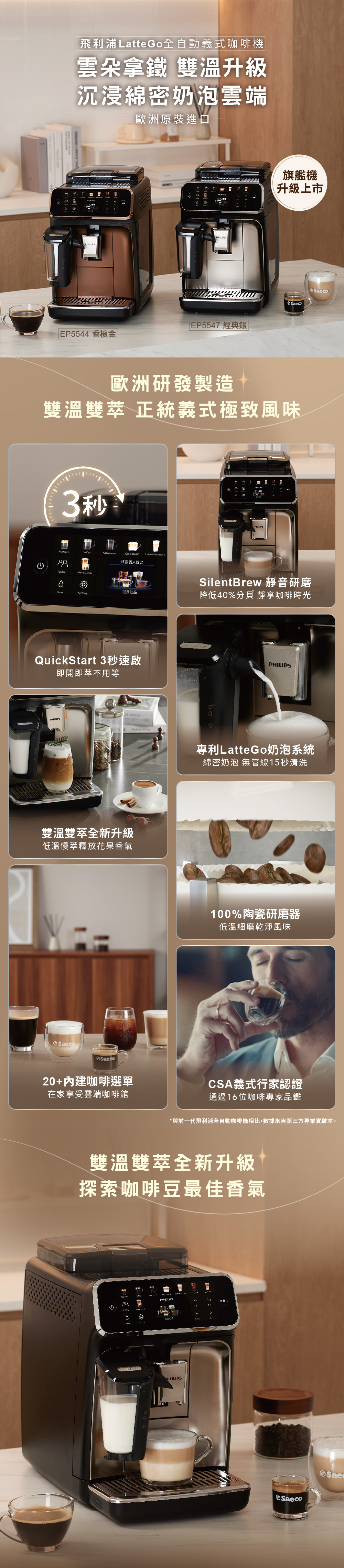 【旗艦機新色】飛利浦LatteGo 雙溫萃取全自動義式咖