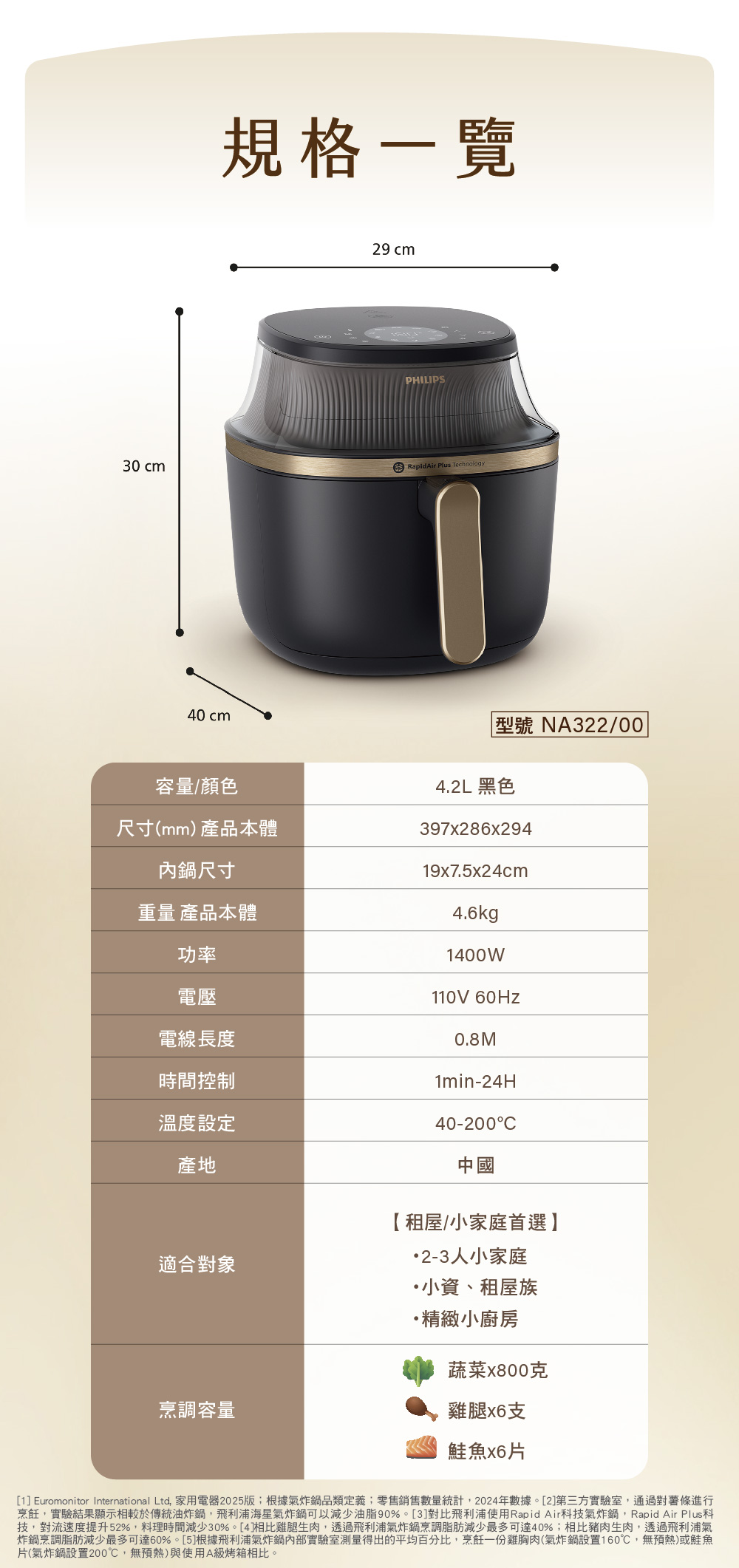 飛利浦旋鈕式海星氣炸鍋3.2L-黑皮小星(NA110/00)