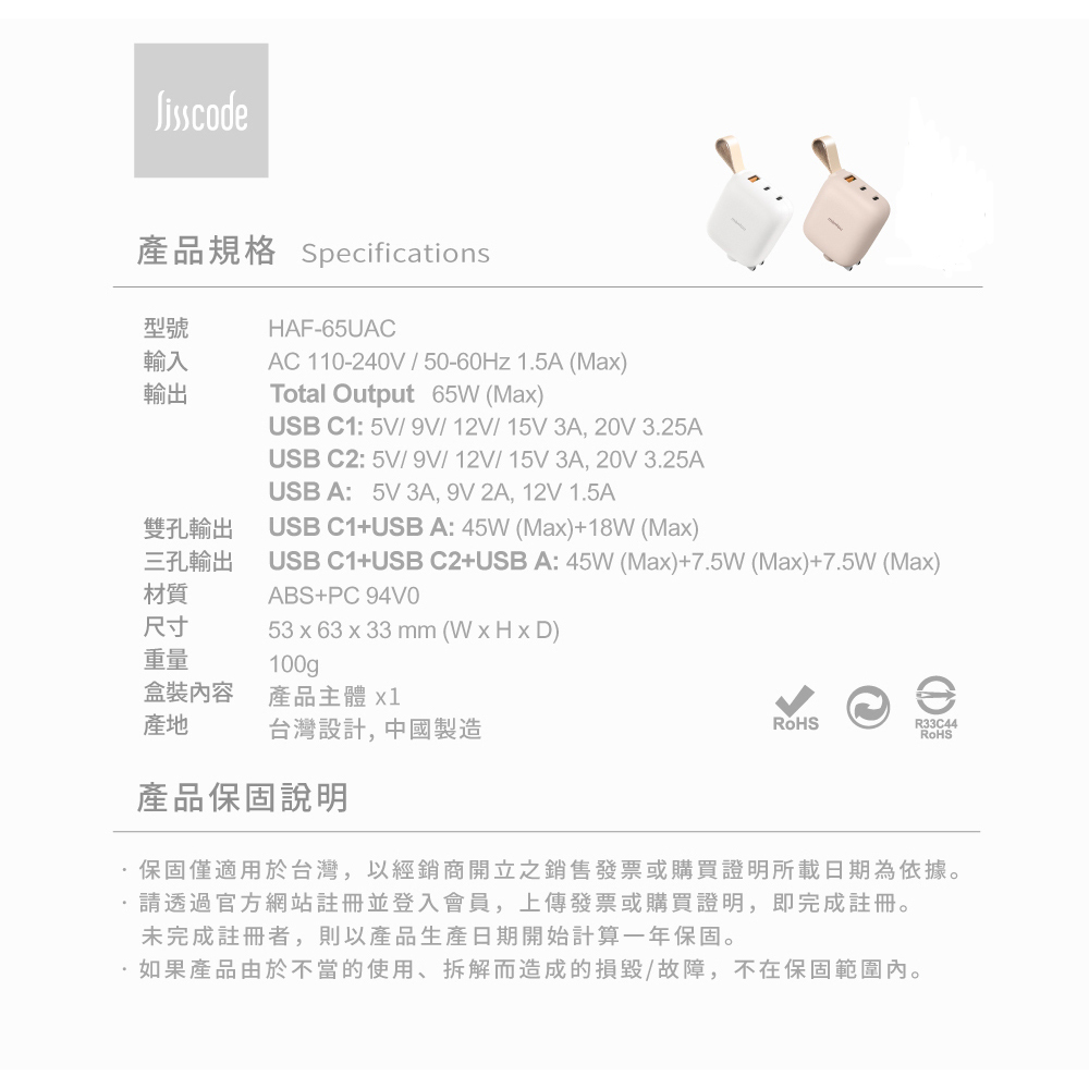 lisscode 小饅頭氮化鎵65W極速充電器 三孔 小體積 白色 1個