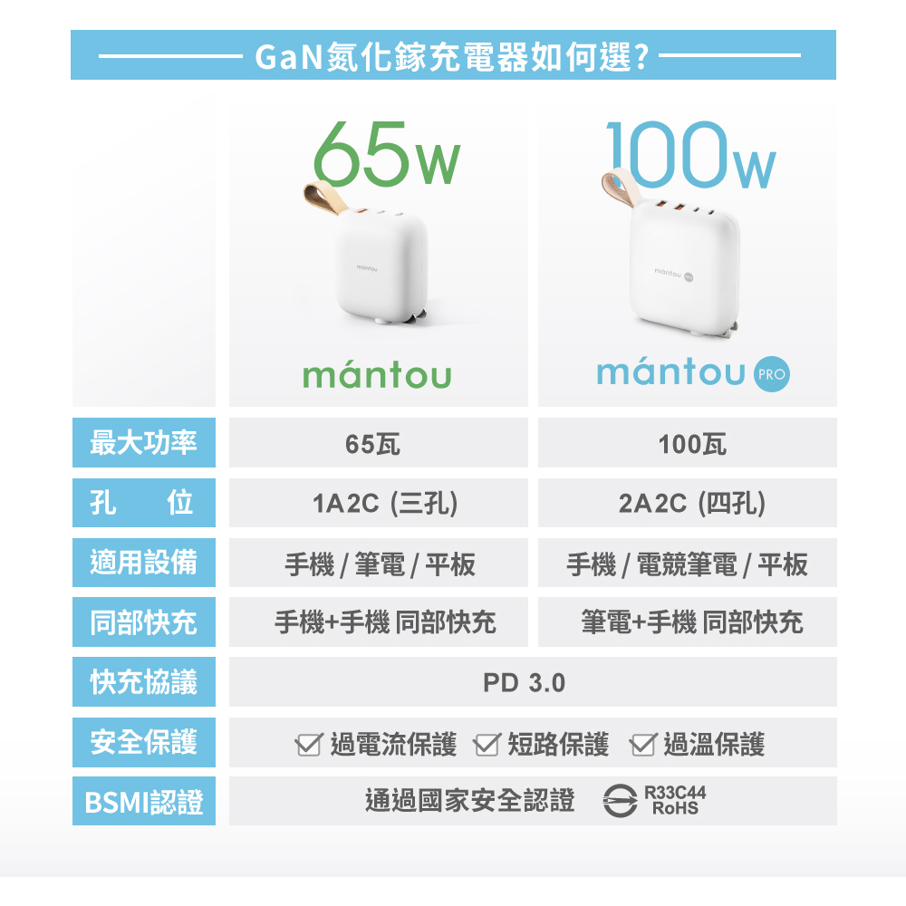 Mantou 65W氮化鎵PD充電器 | 台灣設計 白色