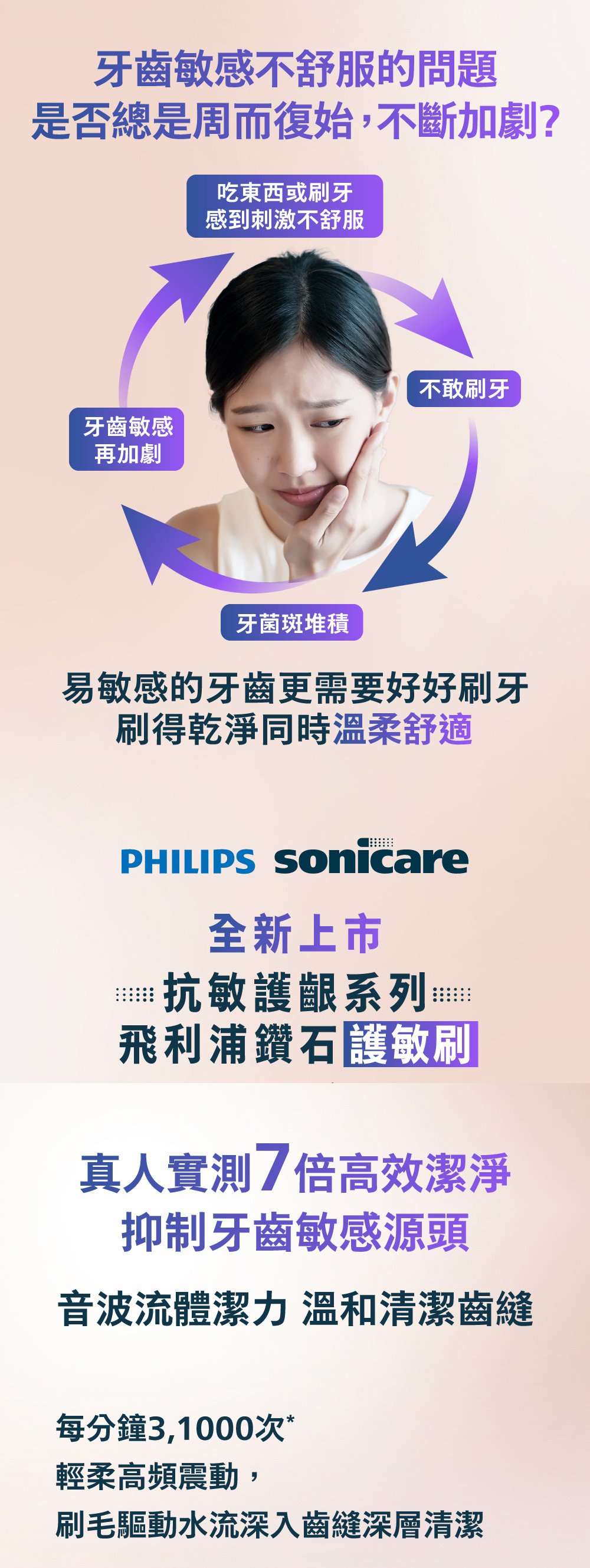 PHILIPS 飛利浦 官方直營 Sonicare抗敏Pro 鑽石智能音波電動牙刷/護敏刷HX3892/02(雙入組)