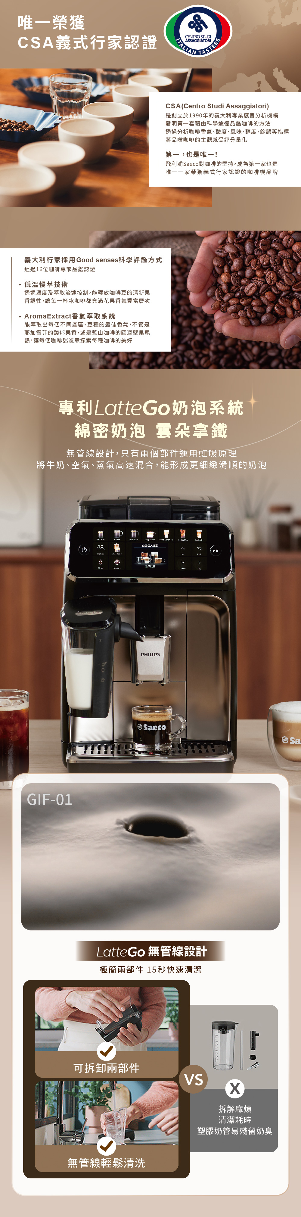 ★限時送多重好禮★ 飛利浦LatteGo 雙溫萃取全自動義式咖啡機-曜光金(EP5544/80)