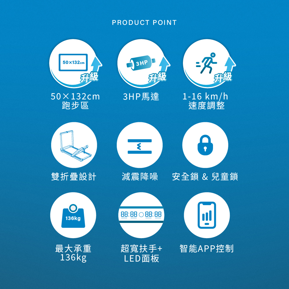 AXEFIT 登峰者電動跑步機(無刷馬達/15段坡度/全折收/App連結)