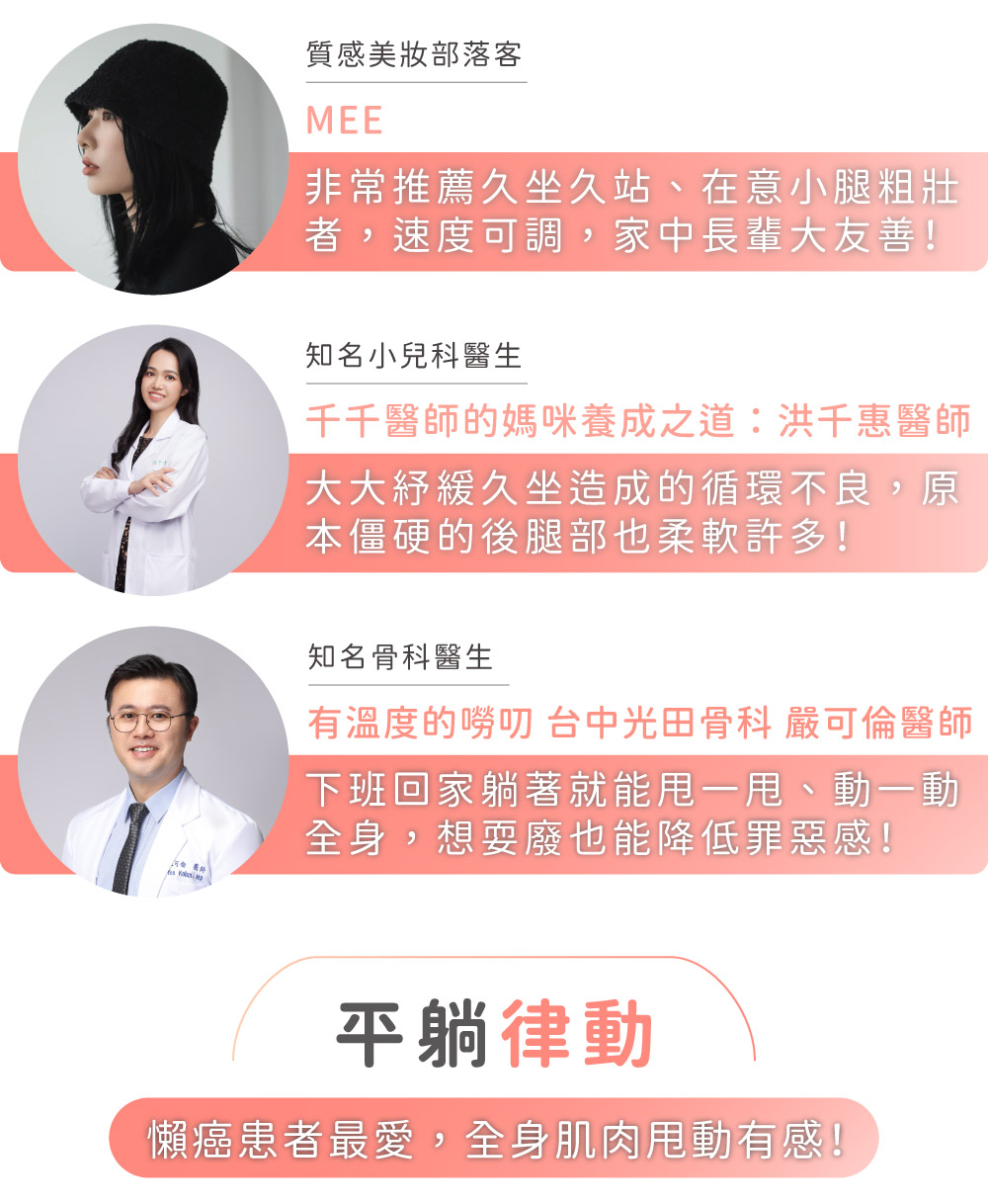 ※律動機搖擺機屬運動器材,由機械輔助的被動運動,非醫療器材。
