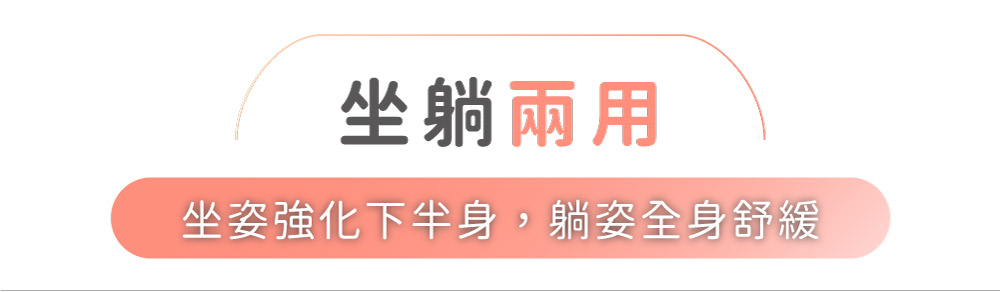 坐躺兩用,坐姿強化下半身律動,躺姿全身甩動舒緩僵硬部位,使用更彈性。