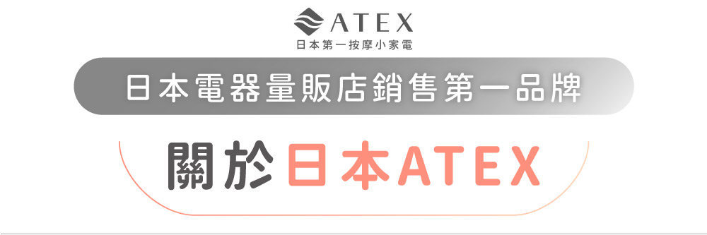 1992年成立至今,每年推出許多創新按摩家電,加上商品外觀富設計感,深受日本女性喜愛,累積30年消費者好評,各大媒體輪番報導,2019-2021年連續三年榮獲日本Good Design設計大賞,奠定ATEX成為日本按摩家電業界指標性品牌。