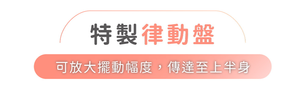 傳統搖擺機僅作水平擺動,擺幅及傳導距離有限,此次升級版律動搖擺機改良搖擺弧度,並增加高低起伏。