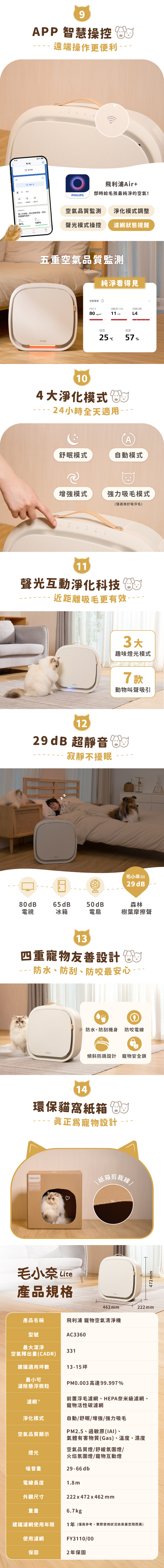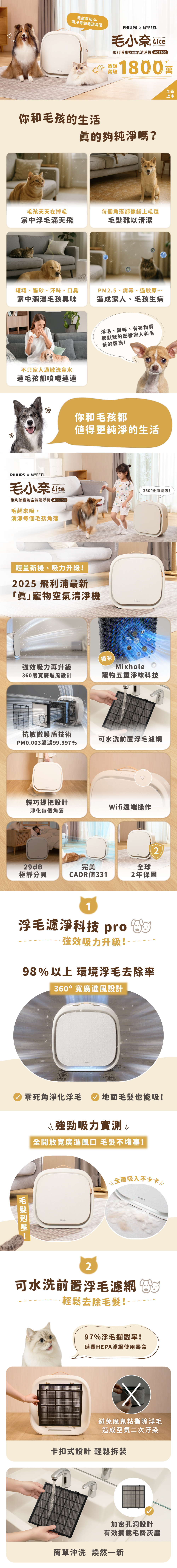 ★送7-11千元商品卡+喵皇奴+專用濾網★飛利浦寵物抗敏空氣清淨機-毛小奈 (AC3681/81)-適用17坪