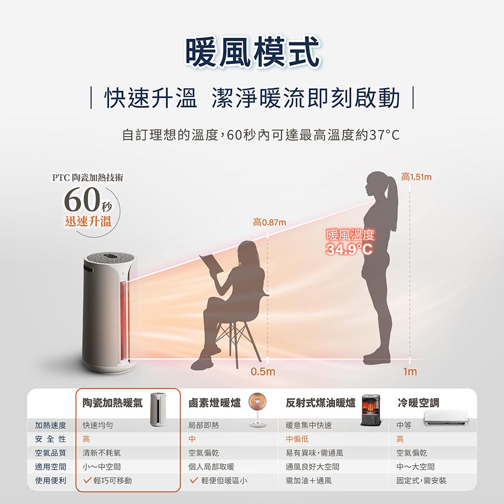 北方 PTC831S 房間 / 浴室兩用電暖器 電子式