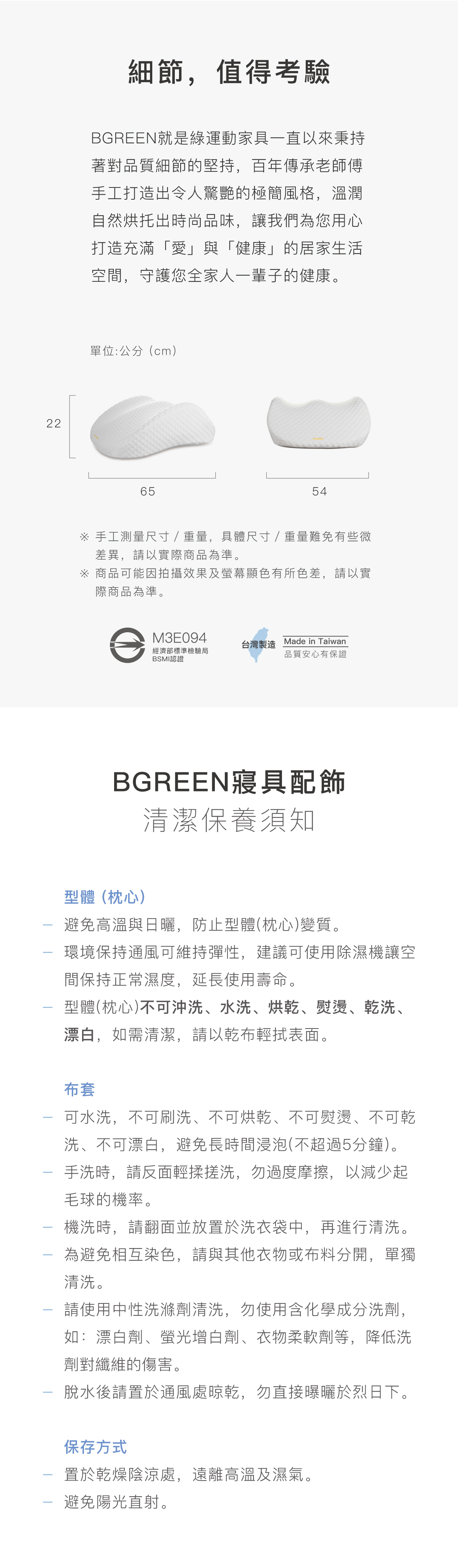 寢室安居 貓肚皮枕頭記憶枕 1個 70 x 41 x 10cm 綠色