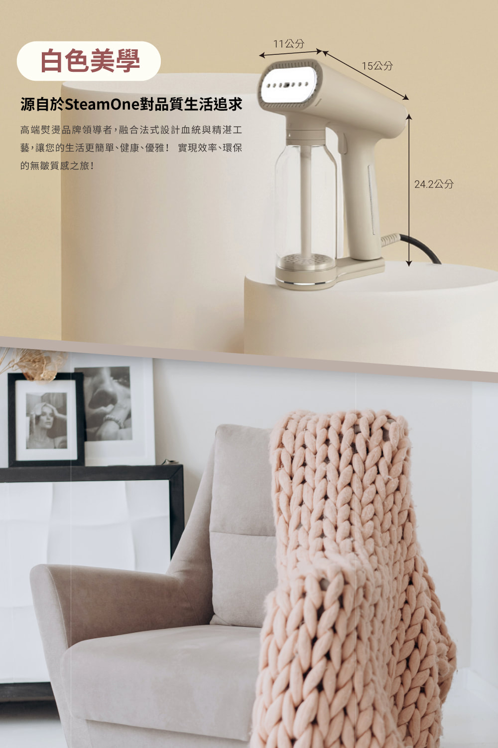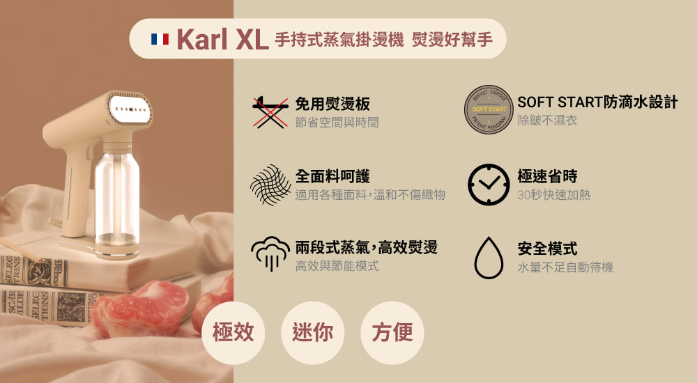【法國 SteamOne】Karl XL 手持式掛燙機 奶油白