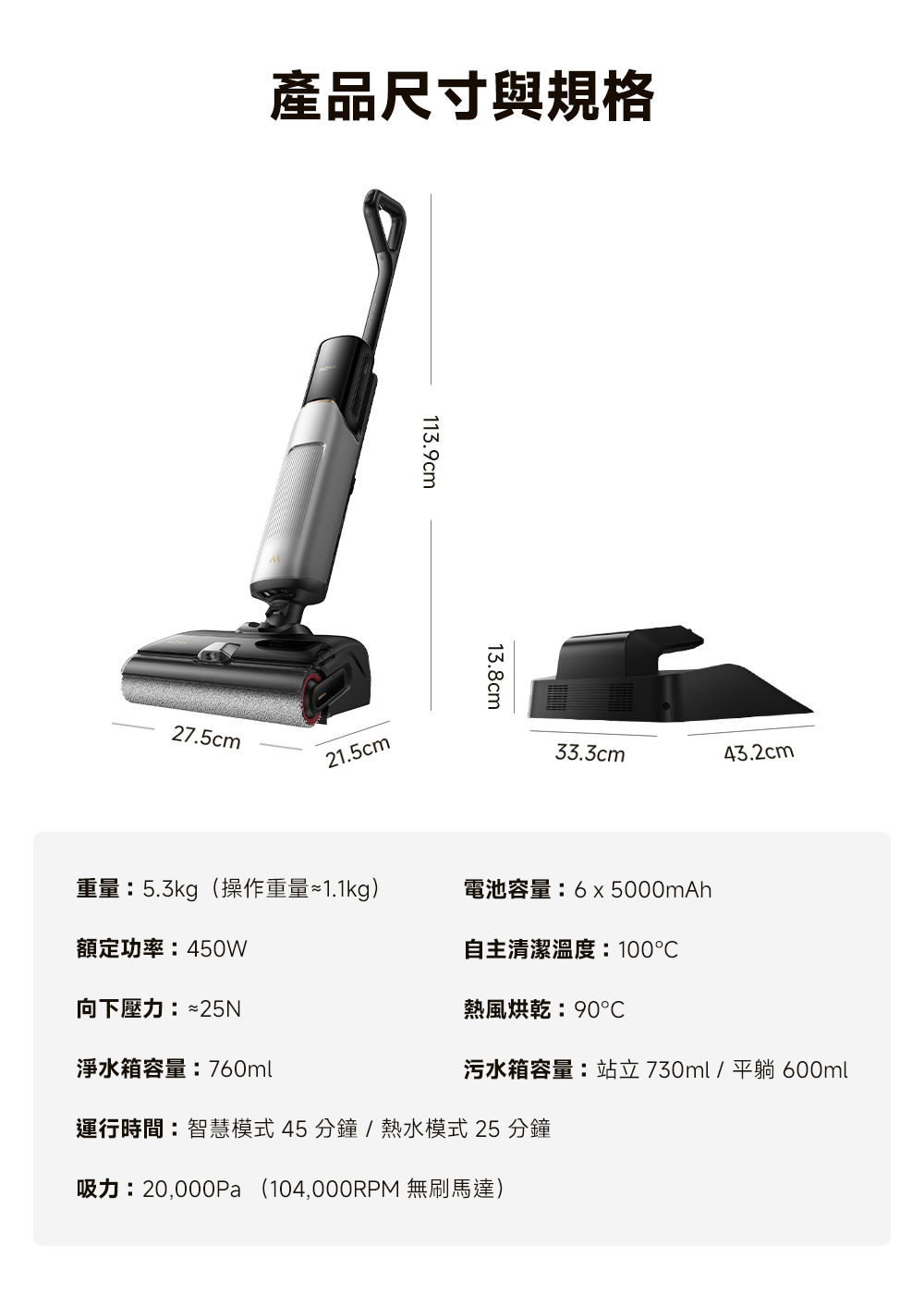 無線直立式吸塵器專用乾濕兩用拖把吸頭