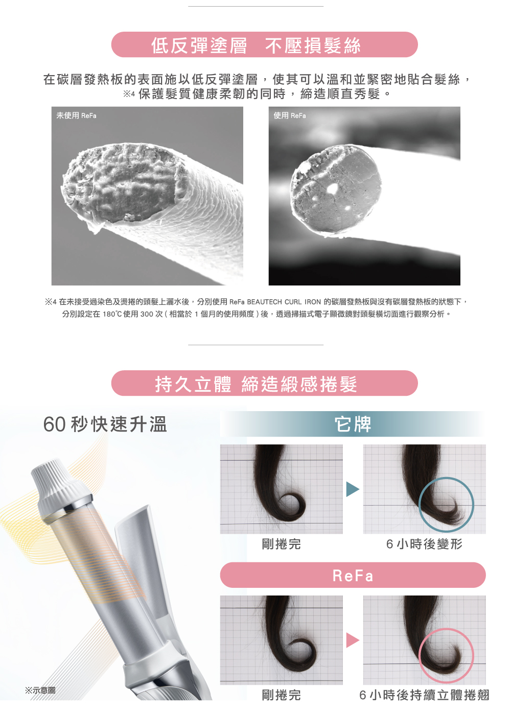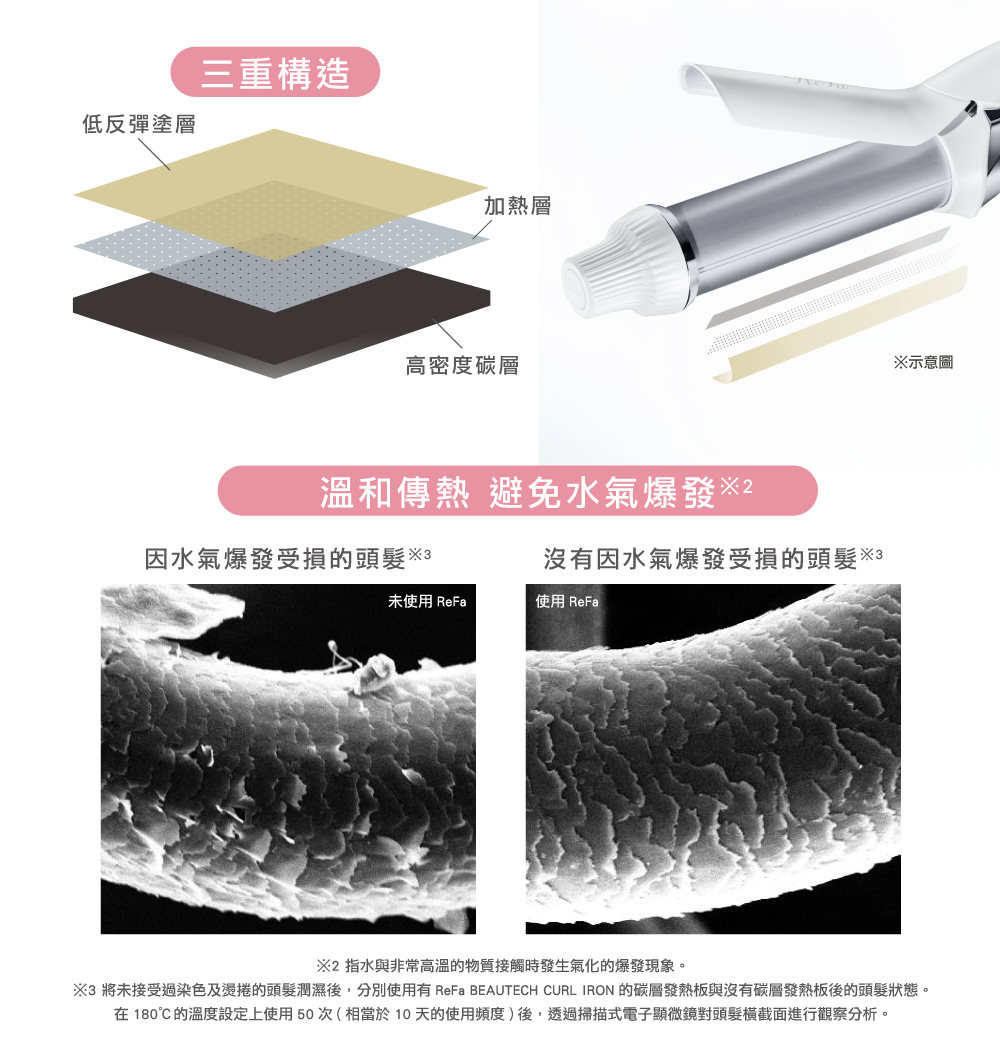 •使用中,請勿抹髮膠或噴霧式髮膠在本體及頭髮上。否則可能導致火災、觸電、燙傷。