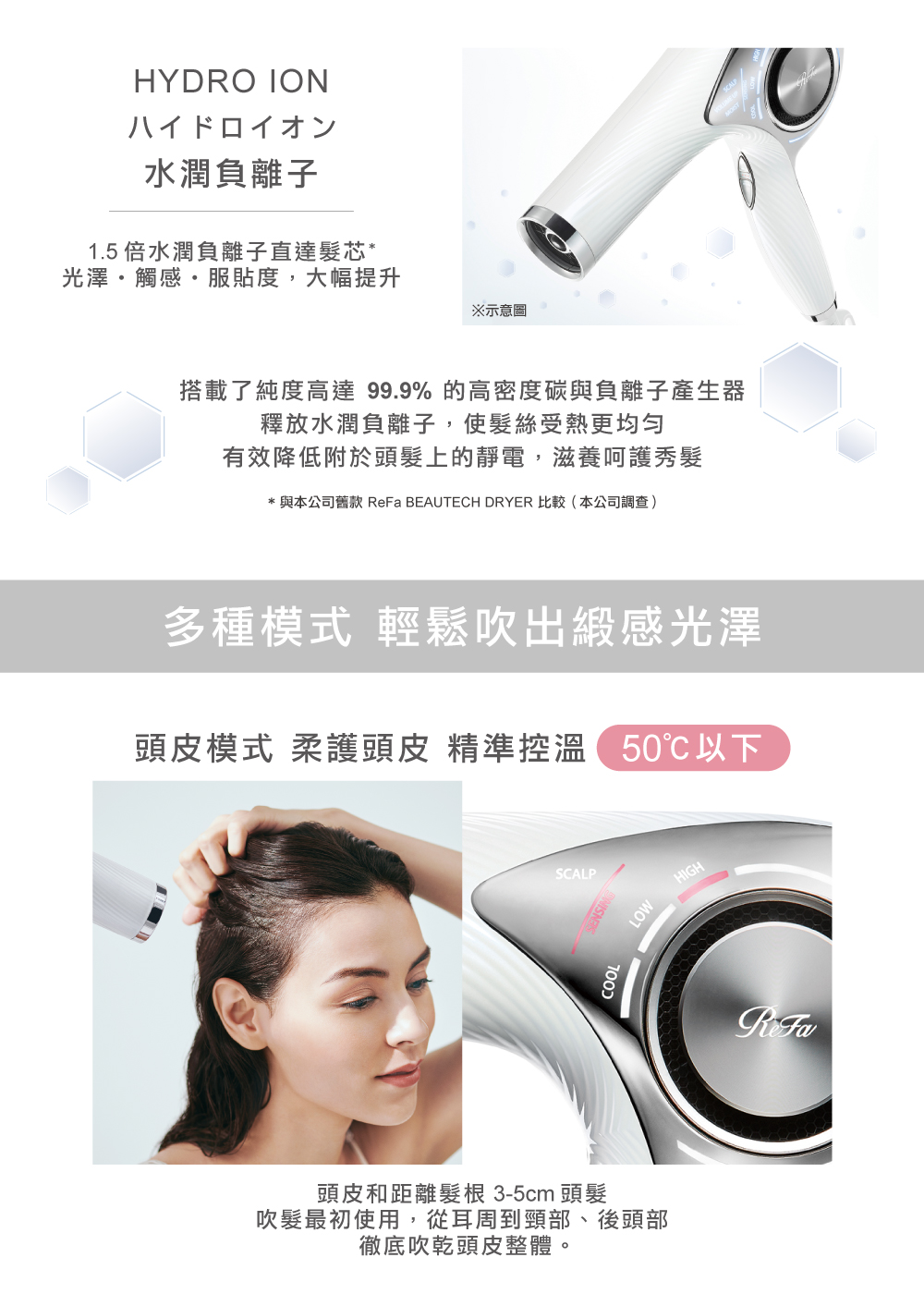 •使用時請保持出風口距離頭髮 3cm 以上。距離過近可能會導致頭髮燒焦。