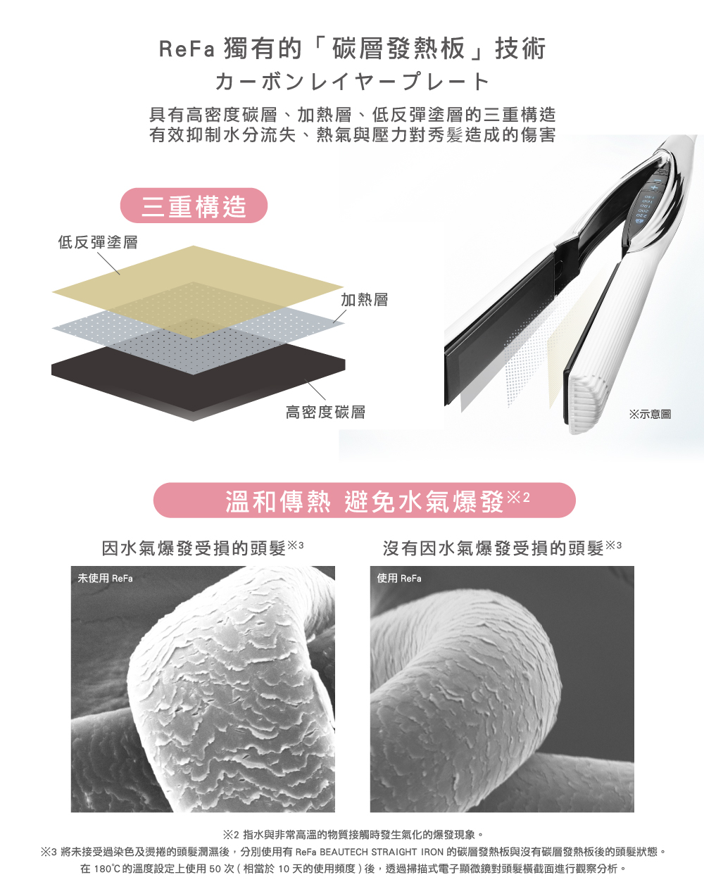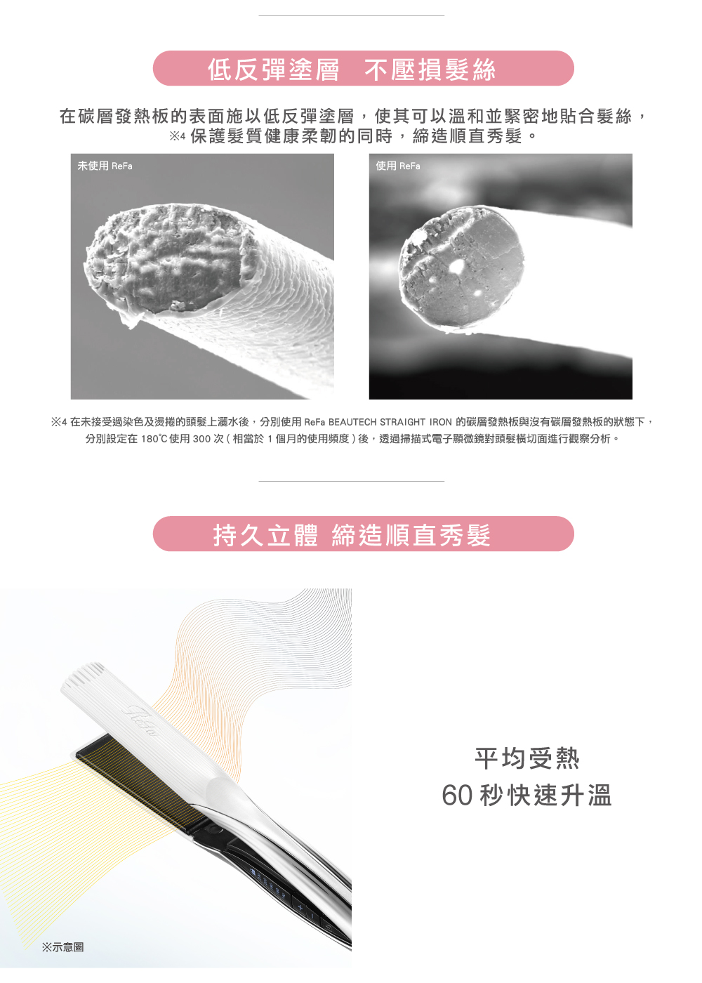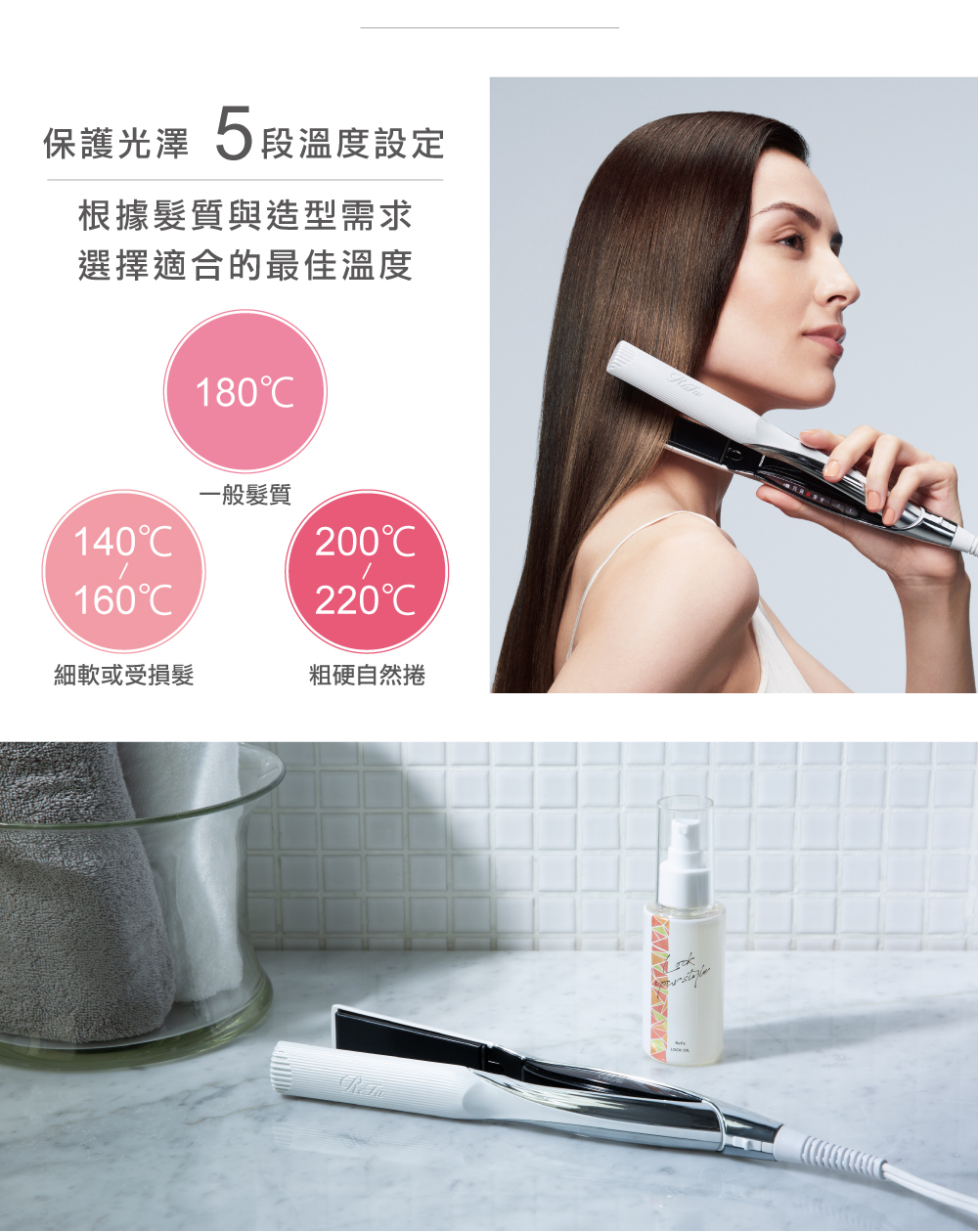• 當夾著頭髮時,請勿一直停留在同一個地方,否則可能導致燙傷、頭髮顯著受傷。