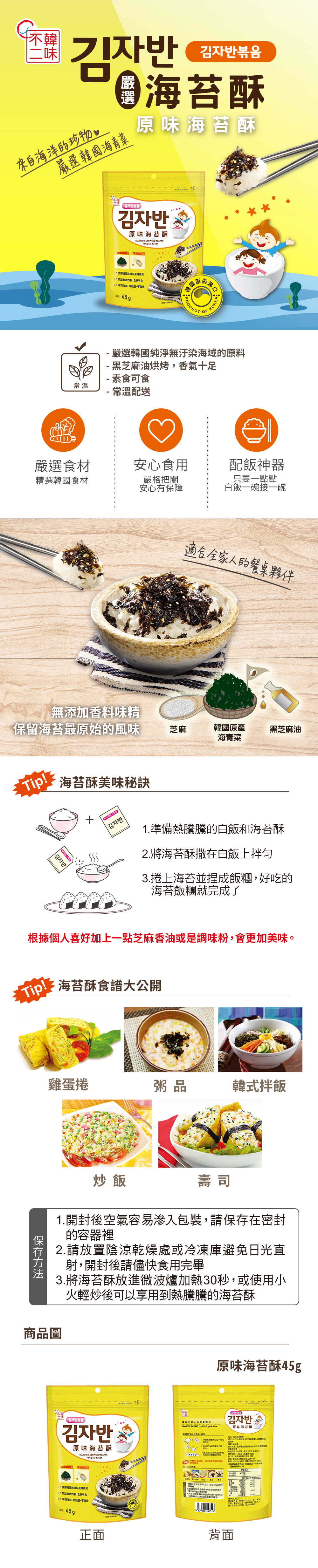 韓味不二-海苔酥(原味)*45g*5入組