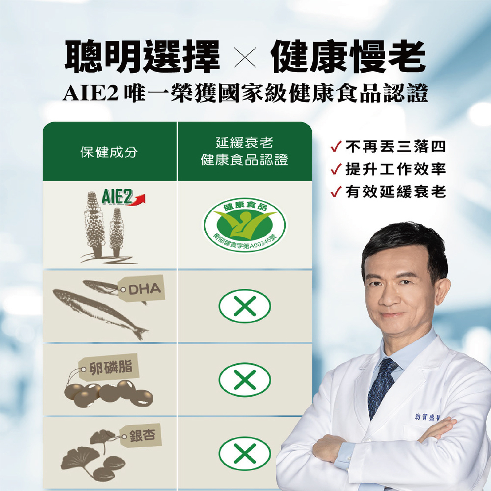 【杏輝醫藥】蓉憶記膠囊 30粒/盒 (專利成分AIE2) 國家認證健康食品