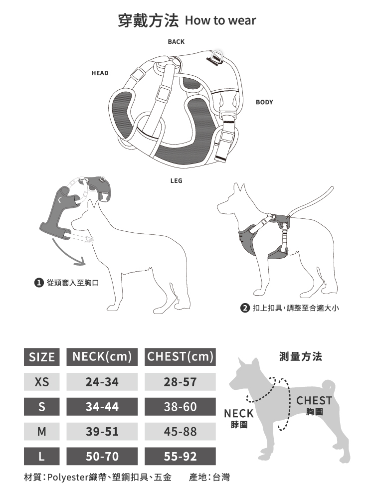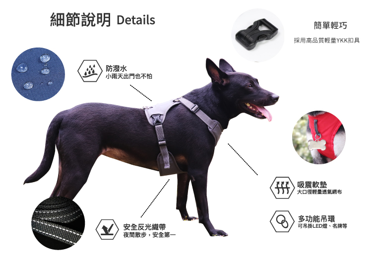 Pets Famliy 寵物背帶反光網布 1個 XS 黑色