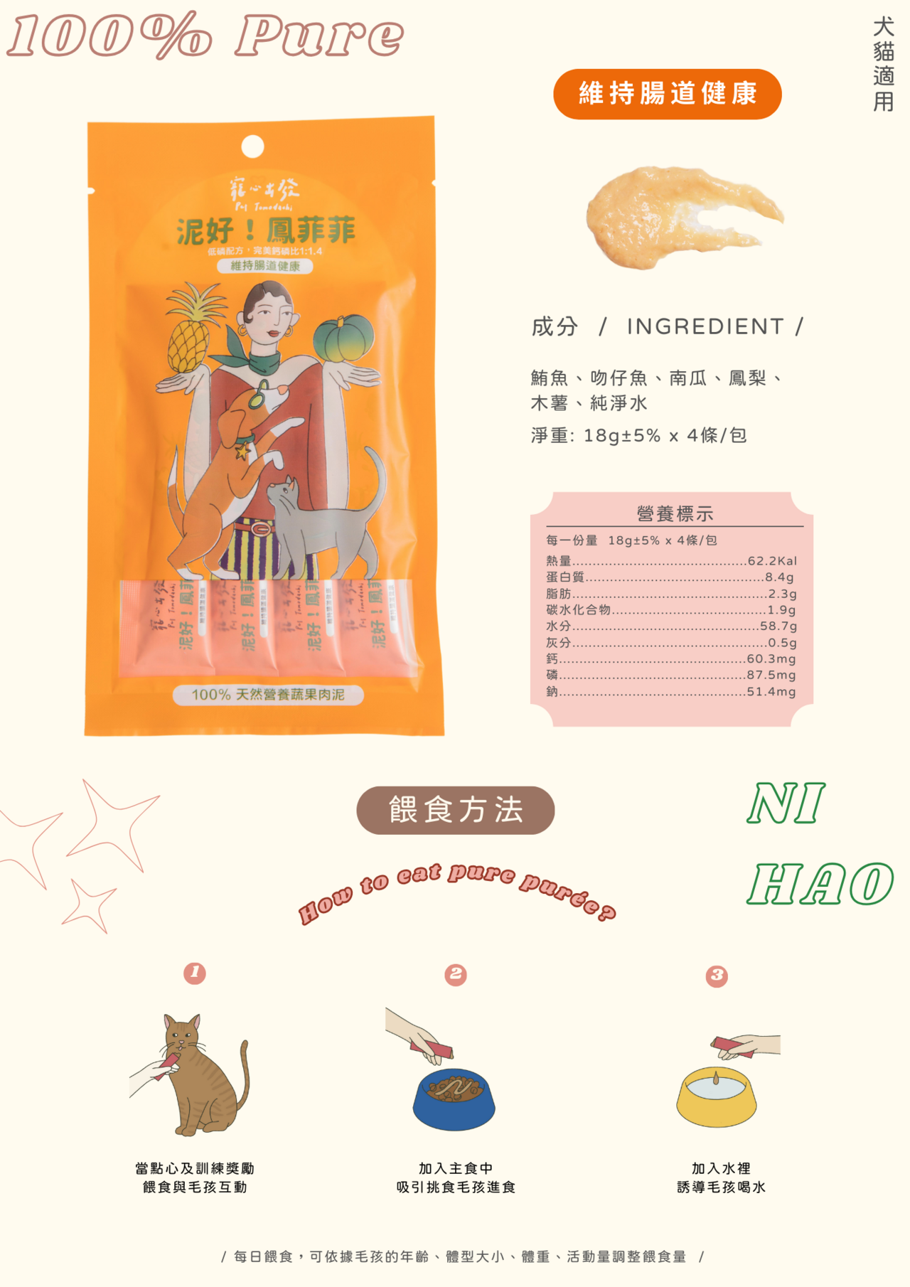 肉泥條 護毛系列 膠潤御膳雞 含南瓜高纖助消化 狗貓適用 小食