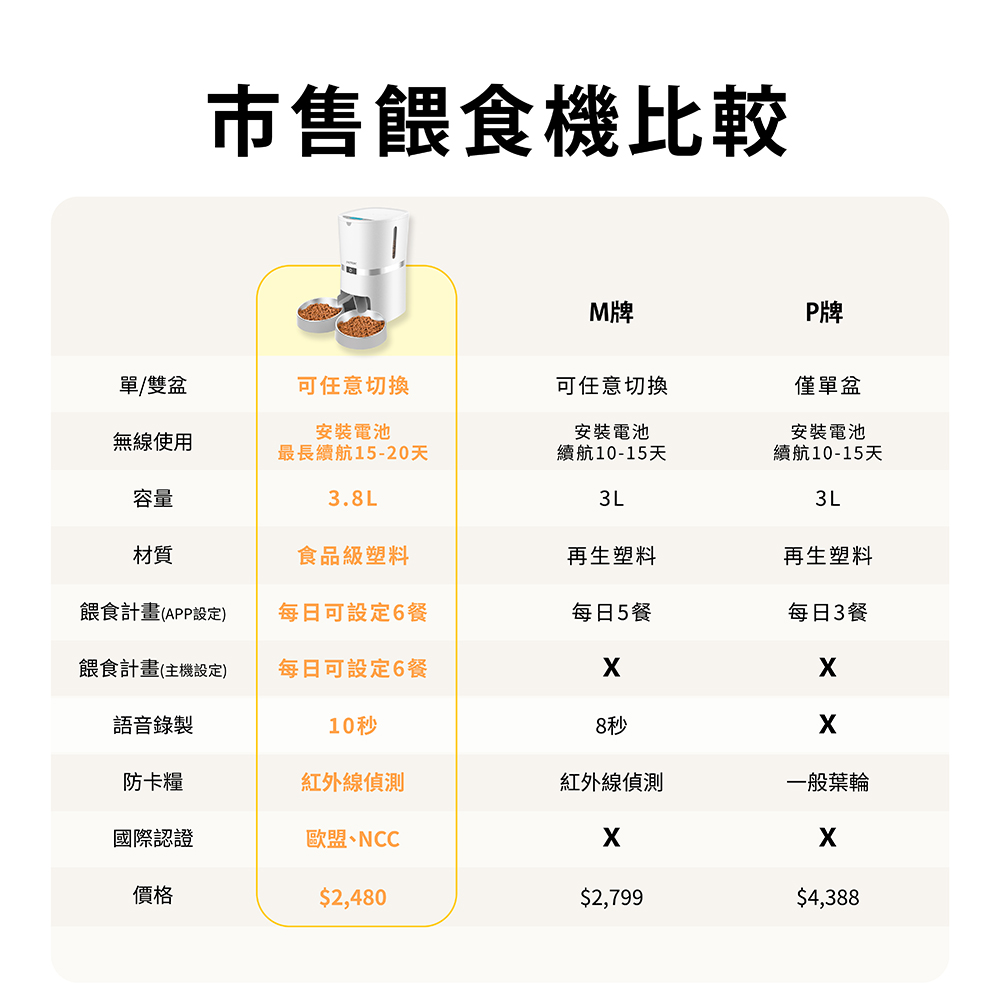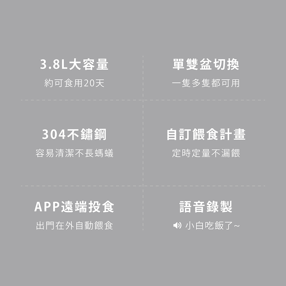 👍可設定每日六餐餵食計畫,每餐最高出糧量48份